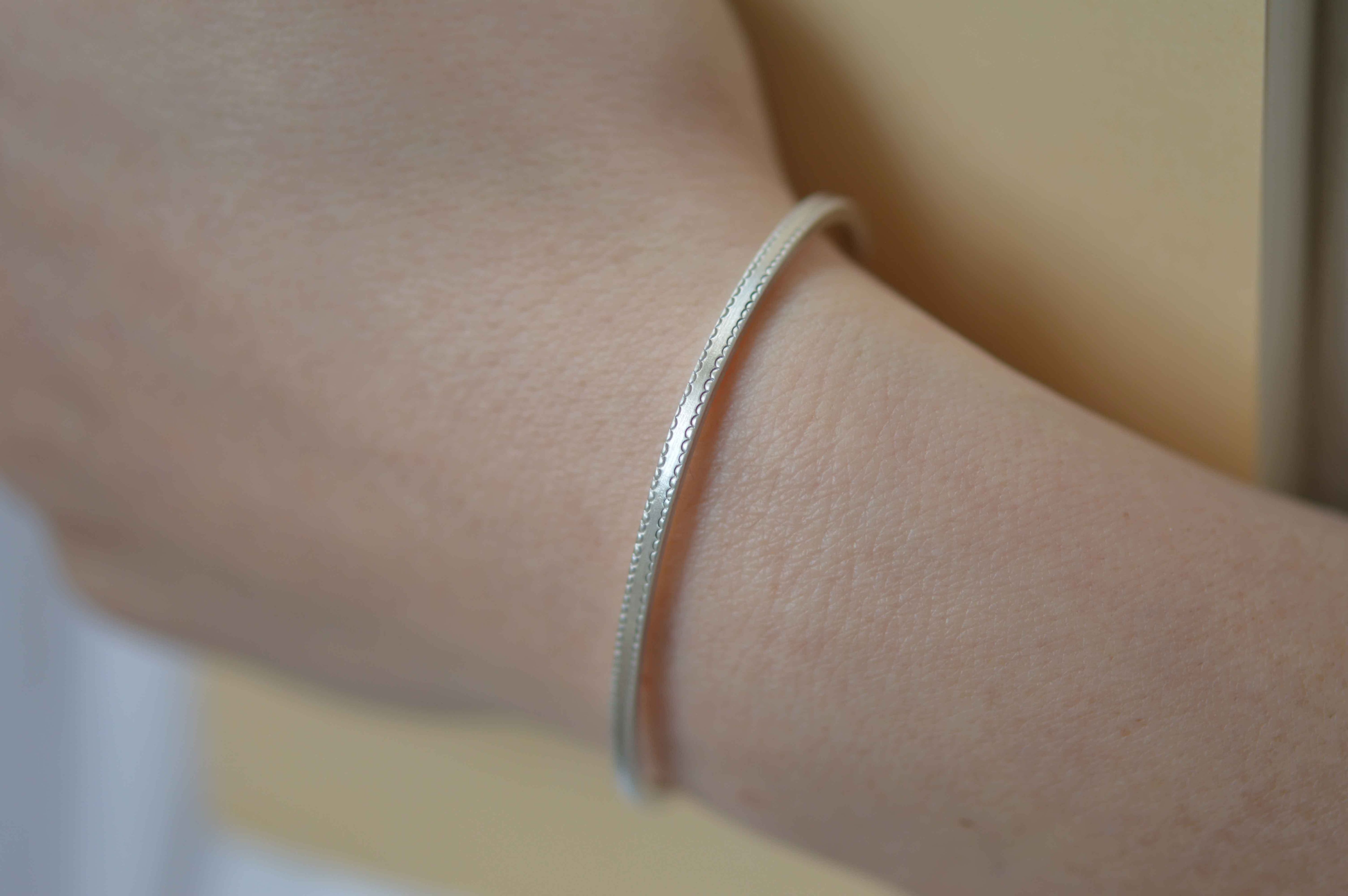 ※バングル自体は、ご自身でやさしく曲げて手首に合うように調整ができます。