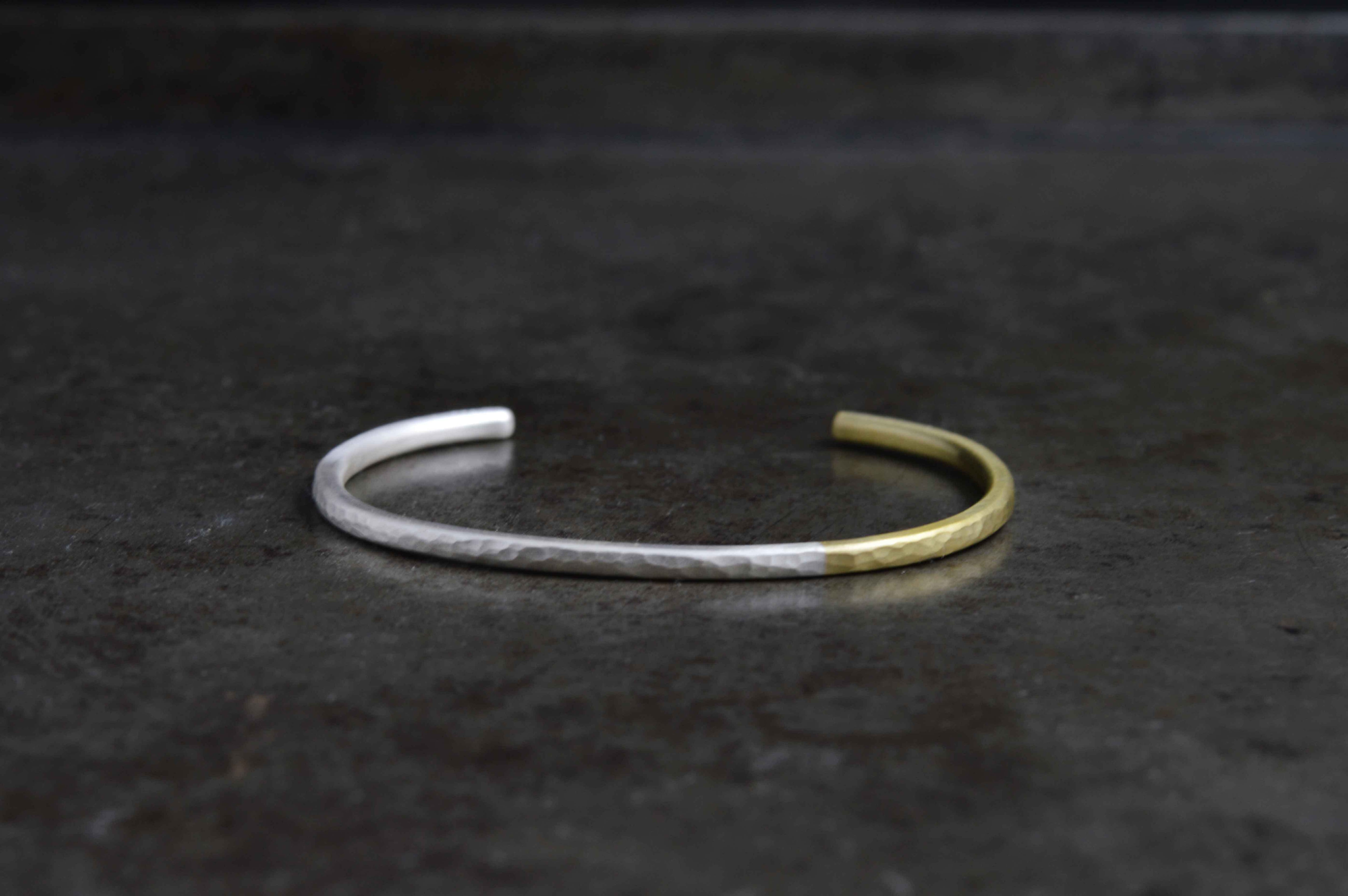 真鍮と銀を繋ぐことで、一つの形を成す「交バングル」
