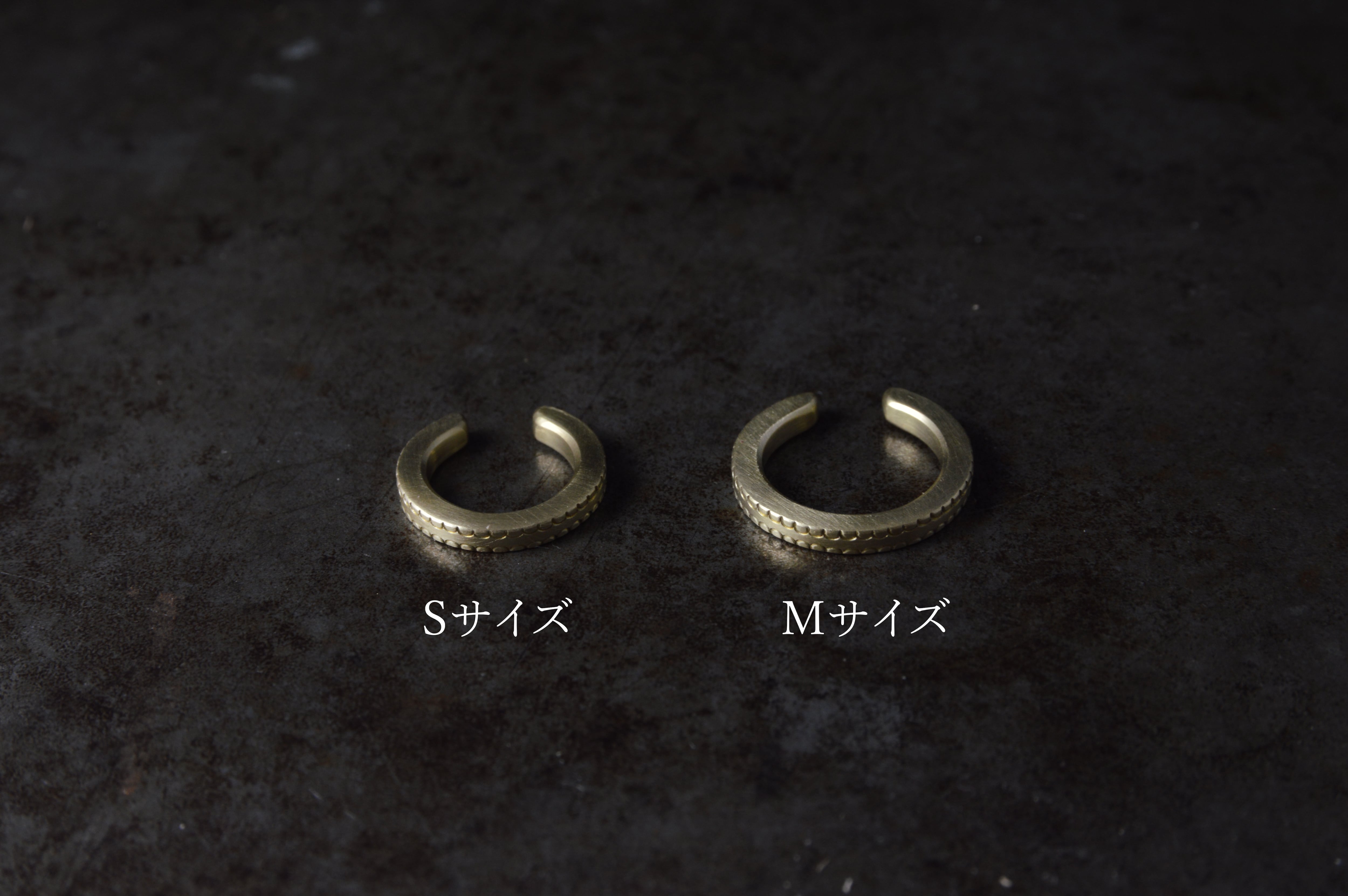 手作業で細かな粒の模様を打ち込んだイヤーカフ。